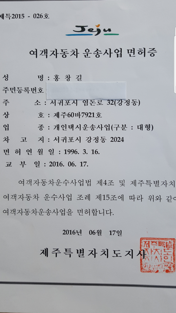 여객자동차 운송사업 면허증