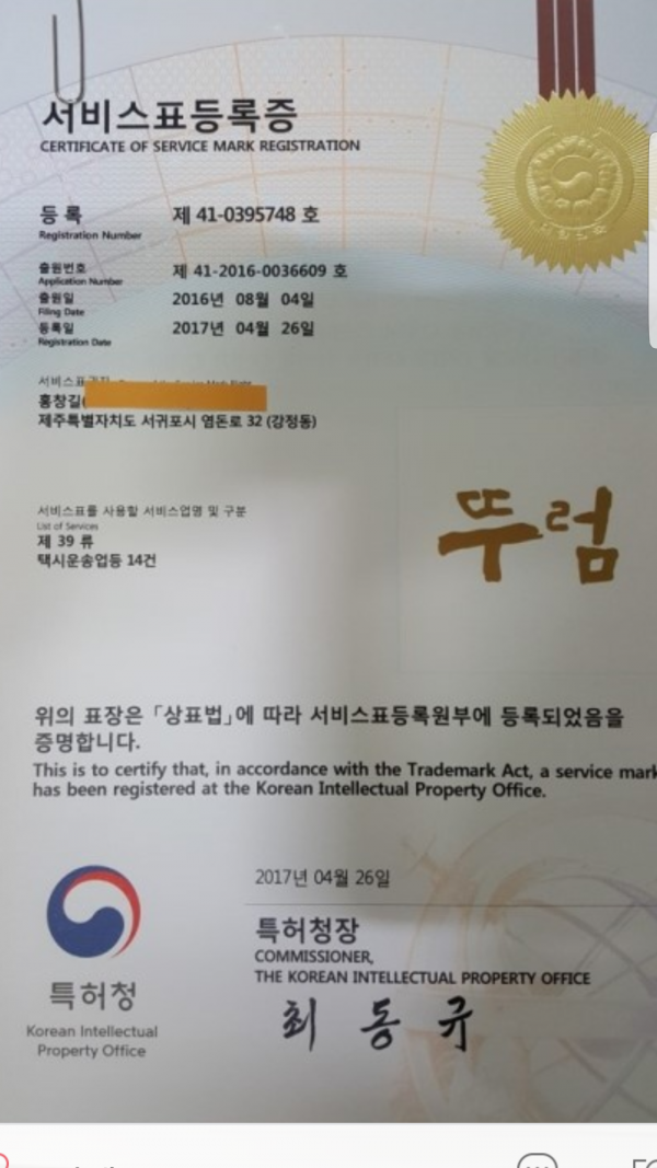 상호 : 뚜럼대형택시(상표등록) | 사업자등록번호 : 616-21-39192